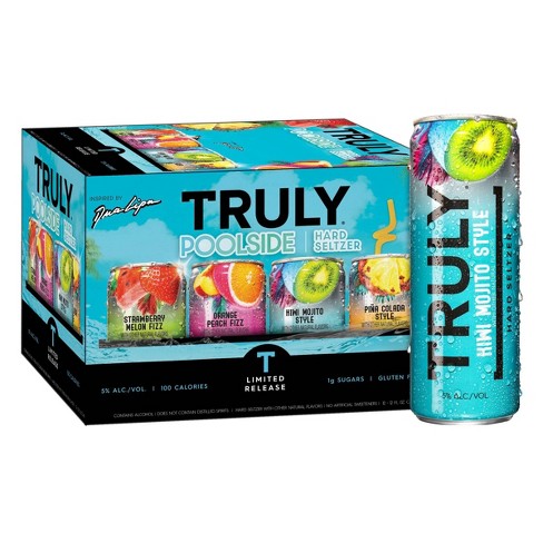 Truly Hard Seltzer Lemonade Mix Pack - 12pk/12 fl oz Slim Cans Truly Hard Seltzer Lemonade Mix Pack is the perfect mix of refreshing hard seltzer and sweet lemonade for a drink that's big on taste and light on calories and sugar. Truly Lemonade comes in four delicious flavors: Original Lemonade, Strawberry Lemonade, Watermelon Lemonade, and Mango Lemonade. Each 12oz. can of Truly has 100 calories, 5% alc ...