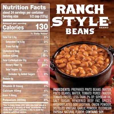 Ranch style beans nutrition label