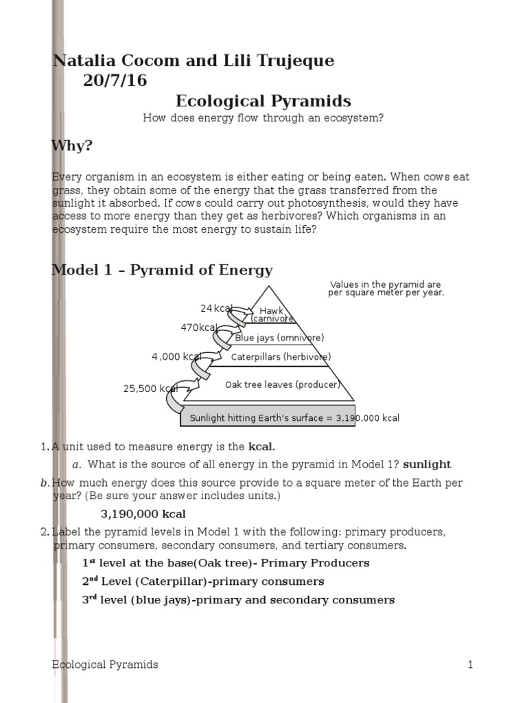 Energy Pyramid Directions - Boone County Schools Label each level of the first pyramid side with the following terms as you move up the pyramid: Producer, Primary Consumer, Secondary Consumer, ...