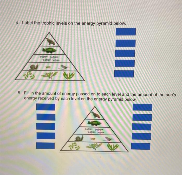 PDF Ecological Energy Pyramid - Chandler Unified School District 3. On the third pyramid side, At the bottom of the first layer label "10% Energy Rule in a Food Chain" a. Label each level of the third pyramid side with the following terms as you move up the pyramid: 10,000 J of energy, 1,000 J of energy, 100 J of energy, 10 J of energy b. On the back of triangle write: The 10% Rule means that when energy ... Energy Pyramid: Definition, Levels and Examples | Earth Eclipse Energy Pyramid is sometimes referred to as an ecological pyramid or trophic pyramid. It is a graphical representation between various organisms in an ecosystem. The pyramid is composed of several bars. Each bar has a different trophic level to represent. The order of these bars is based on who feeds on whom. Europe’s Fossil Fuel Use Is Set to Plummet in 2023, Report Says Il y a 21 heures · The amount of electricity produced from burning fossil fuels in the European Union is set to plunge this year as the bloc focuses on renewables to replace energy supplies from Russia. PDF LESSON- Building An Energy Pyramid - Middle Tennessee State University 1. (On the left of the template): Label each level of the energy pyramid with the appropriate term: producer, primary consumer, secondary consumer, tertiary consumer. 2. (On the right of the template): Label each level of the energy pyramid with the appropriate term: trophic level 1, trophic level 2, trophic level 3, trophic level 4 3.
