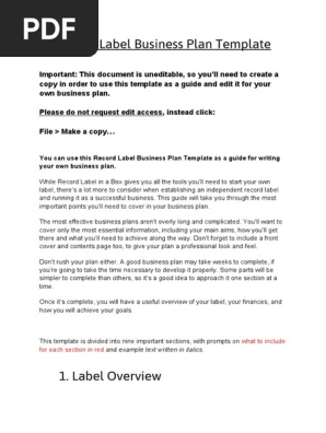 Music Business Plan Template & Guide [Updated 2023] - Growthink A music business plan provides a snapshot of your music business as it stands today, and lays out your growth plan for the next five years. It explains your business goals and your strategy for reaching them. It also includes market research to support your plans. Why You Need a Music Business Plan Record Label Business Plan Template - Google Docs Once it's complete, you will have a useful overview of your label, your finances, and how you will achieve your goals. This template is divided into nine important sections, with prompts on what to include for each section in red and example text written in italics. 1. Label Overview. Record Label Name. Owner (s) Name. Address & Postcode.