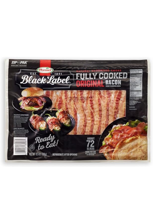 Calories in Hormel Black Label, Bacon, Original, Natural Hardwood Smoke ... Based on a 35 year old female who is 5'7" tall and weighs 144 lbs. Calorie Breakdown Where do the calories in Hormel Black Label, Bacon, Original, Natural Hardwood Smoke, Fully Cooked come from? 24.1% 75.9% Protein Total Fat 80 cal Black Label Fully Cooked Bacon 72 Slices Best in Quality New and ... Find many great new & used options and get the best deals for Black Label Fully Cooked Bacon 72 Slices Best in Quality New and Durable Best at the best online prices at eBay! Free shipping for many products! Hormel Black Label Original Bacon - shop.coborns.com This is the bacon you know and love, but with that little extra something that makes it HORMEL® BLACK LABEL® Original Bacon ? the incomparable taste that comes from applying just the right amount of salt and savor to a quality cut of meat. Take breakfast, burgers, sandwiches, sliders, or any of those bacon recipes you've been dying to try to a whole new level. HORMEL® BLACK LABEL® Bacon - Brands - Hormel Foods Press Release 3.13.2023. Brands. Hormel Foods - The Makers Of HORMEL ® BLACK LABEL ® Bacon - Create First-Ever Smoked Bacon Using Elite Maple Wood From College Basketball's Tournament Courts Fans Can Enter to Win Limited Run of Hardcourt Smoked HORMEL ® BLACK LABEL ® Bacon Championship Strips. Press Release 10.5.2022.